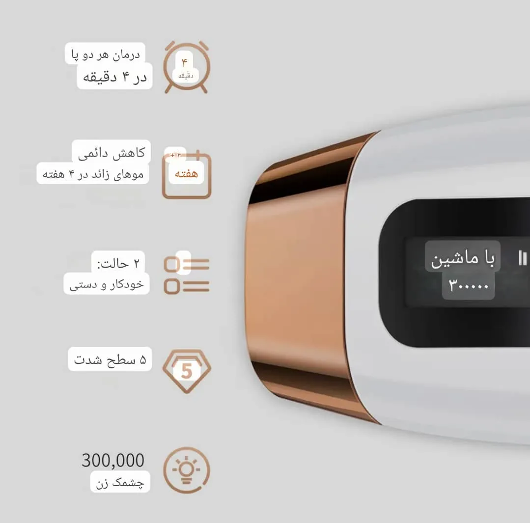 دستگاه IPL خانگی CosBeauty مدل CB-036 یک انتخاب ایدهآل برای حذف دائمی موهای زائد بدن و صورت در خانه است. این دستگاه با بهرهگیری از فناوری پیشرفته IPL (نور پالسی شدید)، موها را بهصورت مؤثر و ایمن از بین میبرد، بدون آنکه به پوست آسیب برساند.⭐ ویژگیهای اصلی محصول:✔️ فناوری IPL پیشرفته:استفاده از نور پالسی شدید برای کاهش دائمی رشد موها، مشابه تکنولوژی مورد استفاده در کلینیکهای زیبایی.✔️ سیستم خنککننده ICE:مجهز به فناوری خنککننده جهت کاهش سوزش و التهاب پوست در حین استفاده، ایدهآل برای پوستهای حساس.✔️ ۵ سطح انرژی قابل تنظیم:امکان انتخاب شدت نور بر اساس نوع پوست و ضخامت مو، برای عملکردی شخصیسازیشده و ایمن.✔️ نمایشگر LED هوشمند:نمایش دقیق اطلاعات شامل سطح انرژی، حالت استفاده و تعداد شات باقیمانده.✔️ ۲ حالت عملکرد:حالت دستی برای نواحی حساس مانند صورت و زیر بغلحالت اتوماتیک برای نواحی بزرگ مثل پا و بازو✔️ تعداد شات بالا (بیش از ۵۰۰,۰۰۰ شات):مناسب برای استفاده بلندمدت توسط یک یا چند نفر در خانواده.✔️ طراحی سبک و ارگونومیک:دارای وزن سبک و طراحی خوشدست، استفاده آسان حتی با یک دست.—📦 مناسب برای:✔ صورت✔ بازو✔ پا✔ زیر بغل✔ خط بیکینی✔ سایر نواحی بدن—💬 رضایت کاربران:این محصول در سایت معتبر eBay با بیش از 383 نظر ثبتشده، رضایت کامل (100٪) کاربران را کسب کرده است.—💰 قیمت جهانی:در سایت eBay.co.uk با قیمت حدودی £291.76 پوند عرضه میشود (حدوداً ۲۰ میلیون تومان با نرخ روز).—📌 محتویات جعبه:دستگاه اصلی CB-036آداپتور برقعینک محافظدفترچه راهنمای انگلیسی