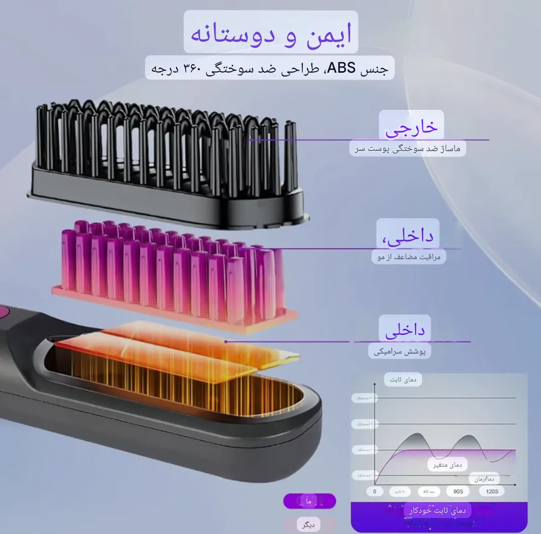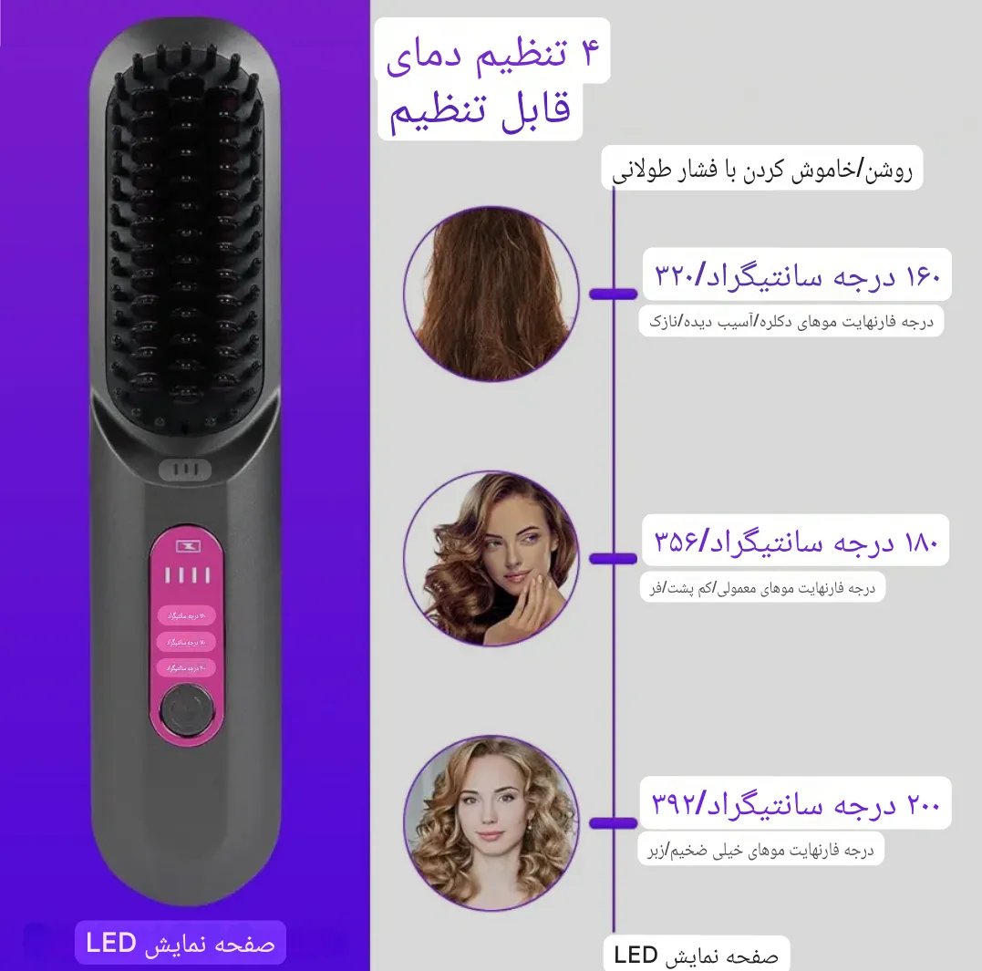 قابل شارژ: بدون نیاز به برق مستقیم، مناسب برای استفاده در هر مکان و با یک بار شارژ کامل مو های خود را شانه کنید.