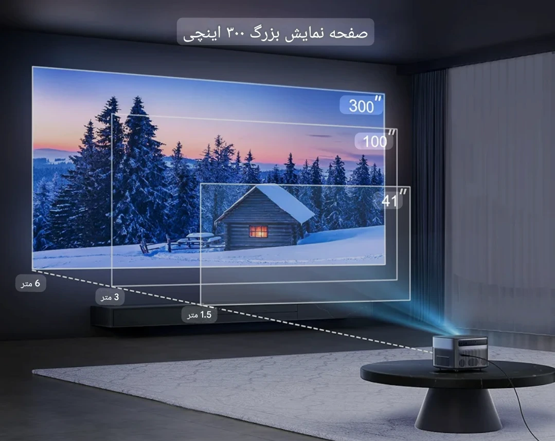 • نمایش تصویر از 40 تا 300 اینچ واقعی + Zoom دیجیتال تا 50٪ بدون نیاز به جابجایی دستگاه