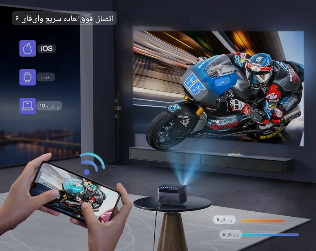 توضیحاتویدئو پروژکتور هوشمند WiMiUS P64 یک گزینه تمامعیار برای کسانی است که میخواهند تجربه واقعی سینمای خانگی، گیمینگ نسل جدید و حتی ارائههای حرفهای را با وضوح خیرهکننده و سرعت پاسخگویی بینقص تجربه کنند.این پروژکتور با فوکوس خودکار لحظهای، WiFi 6 فوقسریع، بلوتوث دوطرفه 5.2، روشنایی نسل جدید و قابلیت نمایش تصویر تا ۳۰۰ اینچ، دقیقاً همان چیزی است که برای تبدیل اتاق، سالن یا حتی فضای باز به یک سینمای واقعی نیاز دارید.اگر دنبال یک پروژکتور نسل قدیم یا معمولی نیستید و یک دستگاه استاندارد ۲۰۲۵ با تکنولوژی Real-Time Auto Focus و Full Dust-Sealed Optical Engine میخواهید — ویدئو پروژکتور هوشمند WiMiUS P64 انتخاب درست استمعرفی و کاربردهاپروژکتور WiMiUS P64 مناسب برای فیلمخانگی سینمایی (Home Theater)، گیمینگ نسل جدید PS5 / Xbox، تماشای فوتبال و مراسم لایو، سمینار و ارائه حرفهای و استفاده در فضای باز (Outdoor Movie Night) طراحی شده است. یک دستگاه همهکاره قدرتمند — نه فقط یک ویدئو پروژکتور ساده.موتور اپتیکال مهرومومشده (Dust-Proof) داخل بدنه WiMiUS P64 برای عمر طولانیفوکوس خودکار + اصلاح هوشمند 6DP64 با سیستم Auto Focus و Auto 6D Keystone Correction بهصورت هوشمند زاویه، تراز و شفافیت تصویر را بدون نیاز به تنظیم دستی اصلاح میکند — فقط روشن کن و تمام. تغییر مکان؟ ضربهی ناگهانی؟ زاویه غیرمستقیم؟ تصویر اتوماتیک اصلاح میشود.