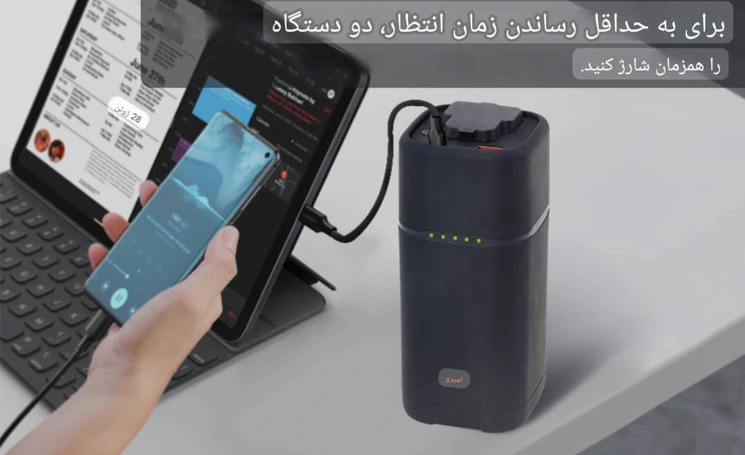 • تعداد درگاهها: یک خروجی AC، یک USB-C، یک USB-A (امکان شارژ همزمان چند دستگاه)