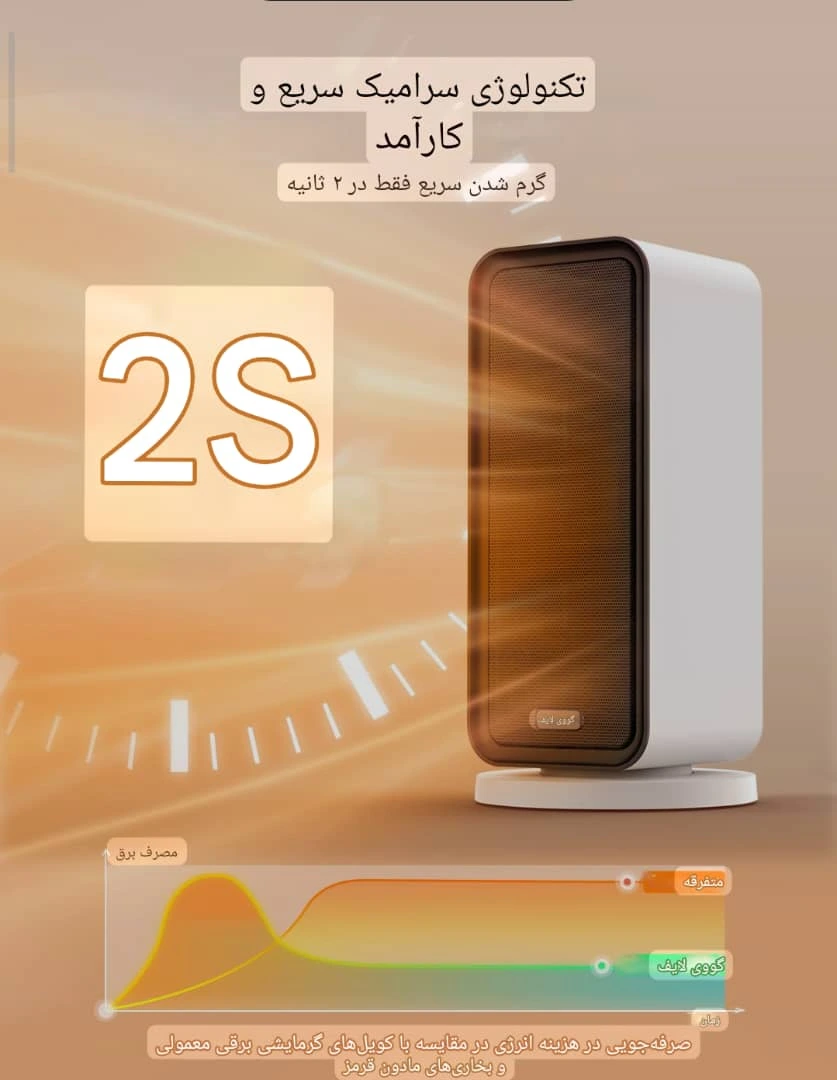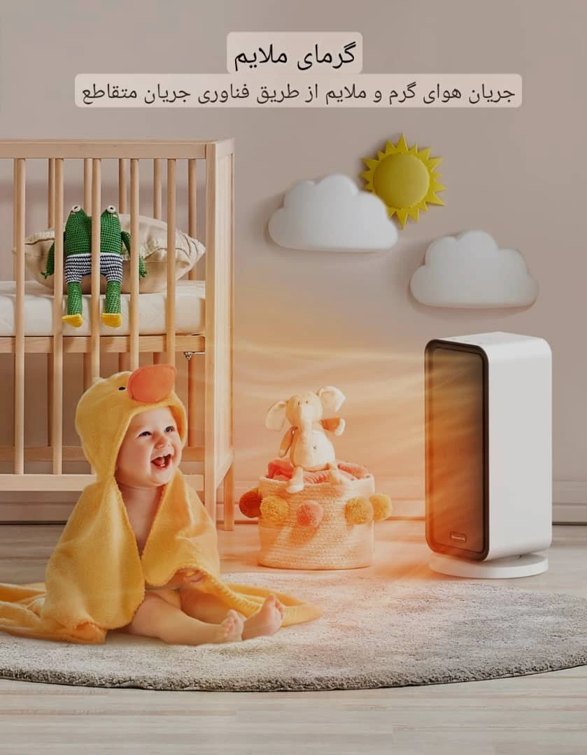 • نوع دستگاه و فناوری ساخت: هیتر برقی سرامیکی با فناوری PTC (گرمایش سریع و امن)
