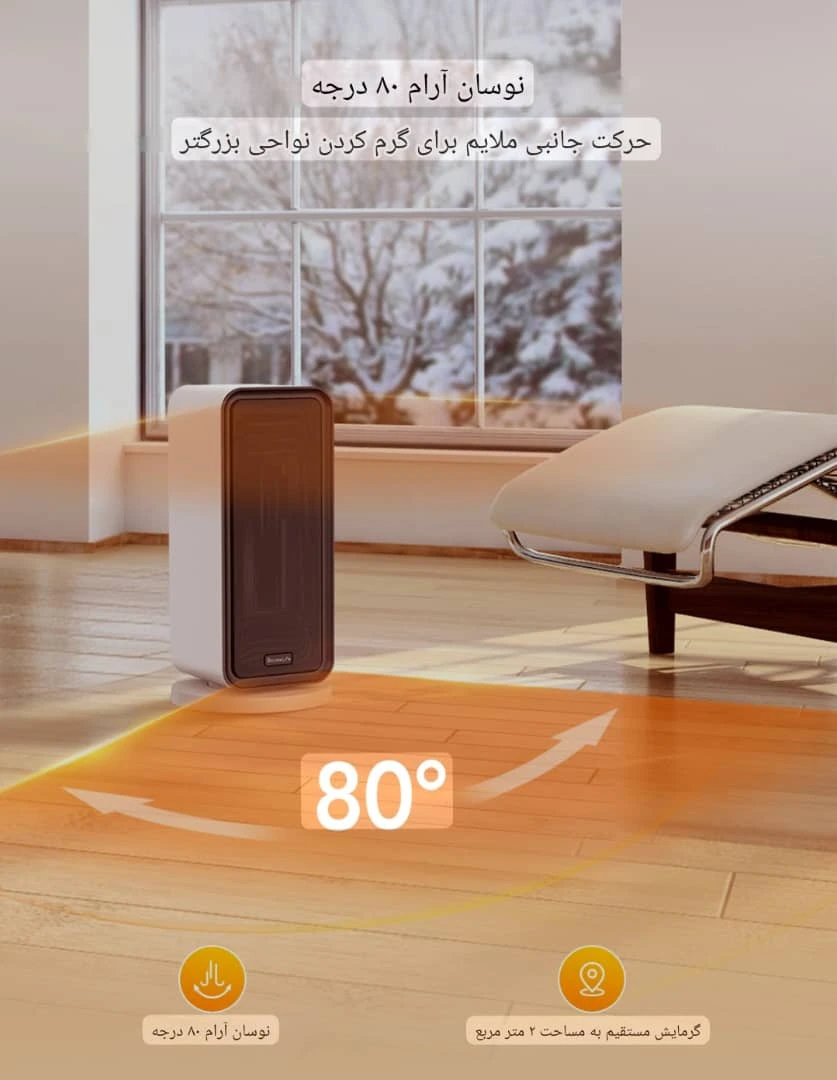 • زاویه چرخش (Oscillation): تا ۸۰ درجه برای پخش یکنواخت گرما