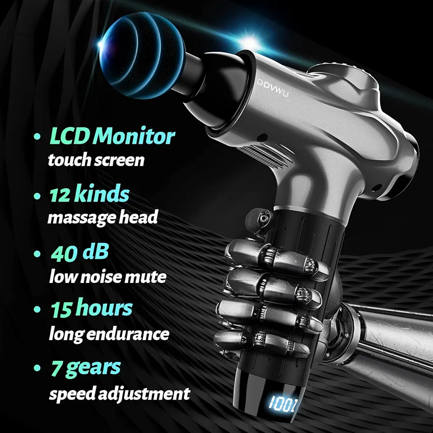 ماساژور تفنگی مجهز به باتری ۳۳۰۰ میلیآمپر ساعتی است که با یک بار شارژ میتواند ۸ تا ۱۵ ساعت ماساژ را پشتیبانی کند. به منظور بهبود دوام محصول، ما یک تنظیم خاموش شدن خودکار ۱۰ دقیقهای به عملکرد اضافه کردهایم.تفنگ ماساژ بافت عمیق: ۱۲ سر ماساژ، ۷ سطح سرعت. مناسب برای عضلات تمام قسمتهای بدن، از آرامش عمیق عضلات لذت ببرید. مناسب برای ماساژ کمر، گردن، بازو، پا.تفنگ ماساژ عضلات: کنترل آسان. به طور موثر درد عضلات را تسکین میدهد، تجمع اسید لاکتیک را بهبود میبخشد و گردش خون را بهبود میبخشد.تفنگ ماساژور: صدای کار کمتر از ۴۰ دسیبل است و دیگران را آزار نمیدهد، تجربهای آرامشبخش را در دفتر و باشگاه ورزشی به شما میدهد.تفنگ ماساژ ضربهای: با کیف حمل ارائه میشود. دفترچه راهنما ضمیمه شده است. میتواند یک همراه جذاب برای انتخاب هدیه برای آقایان، خانمها یا به عنوان هدیه کریسمس، هدیه سال نو باشد.